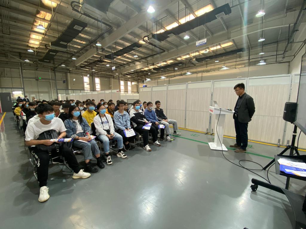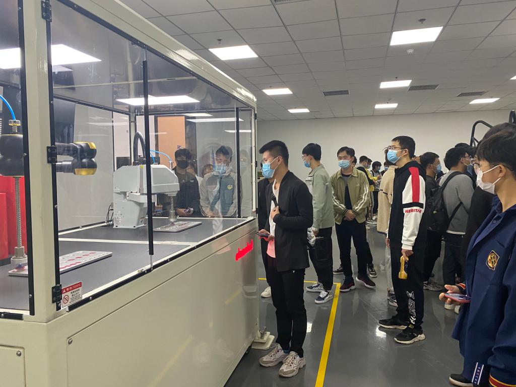 学生们首先参观了设备间,并联机器人、串联机器人、机械臂等专业内容呈现眼前,学生们或交流机器人类型、或拍照记录型号;接着来到企业发展史展厅,了解该公司的行业发展历程;最后,企业代表向同学们介绍了本公司在创新研发、紧追时代潮流艰苦奋斗历程,他说,“两弹一星”精神始终鼓舞着一代代科技工作者忠诚报国、矢志奋斗。