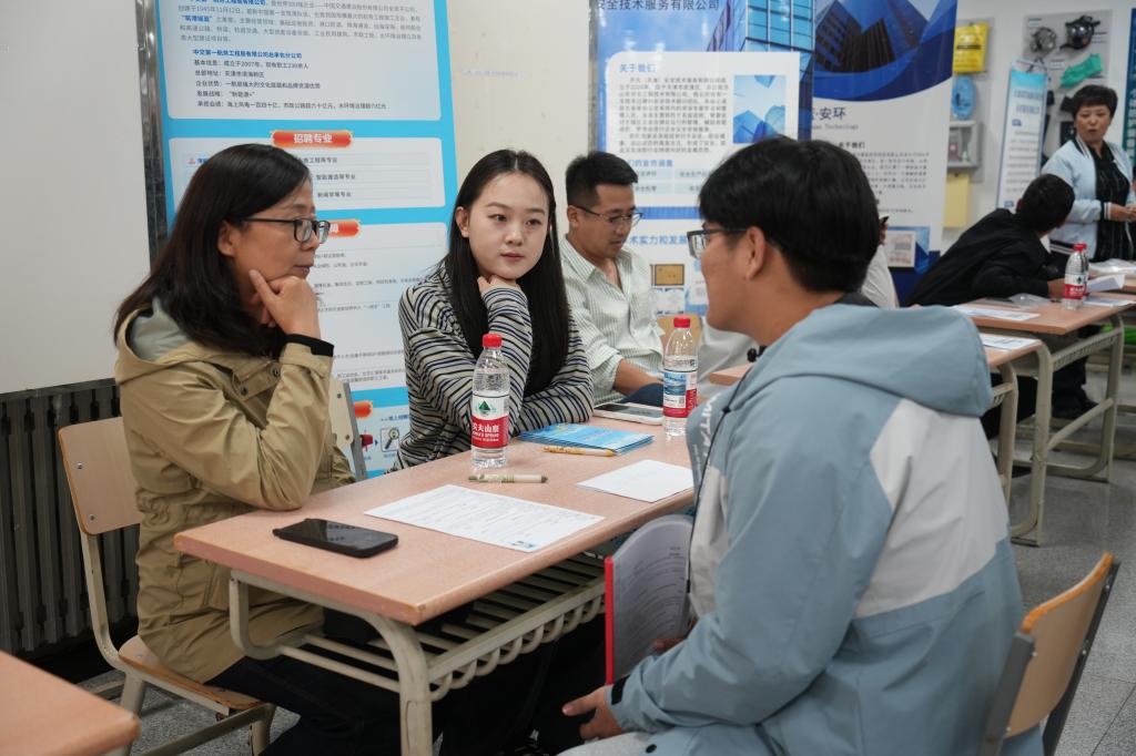 毕业生们就企业文化、薪资待遇、未来发展等方面向企业进行咨询,部分毕业生和企业在现场已达成初步就业意向。