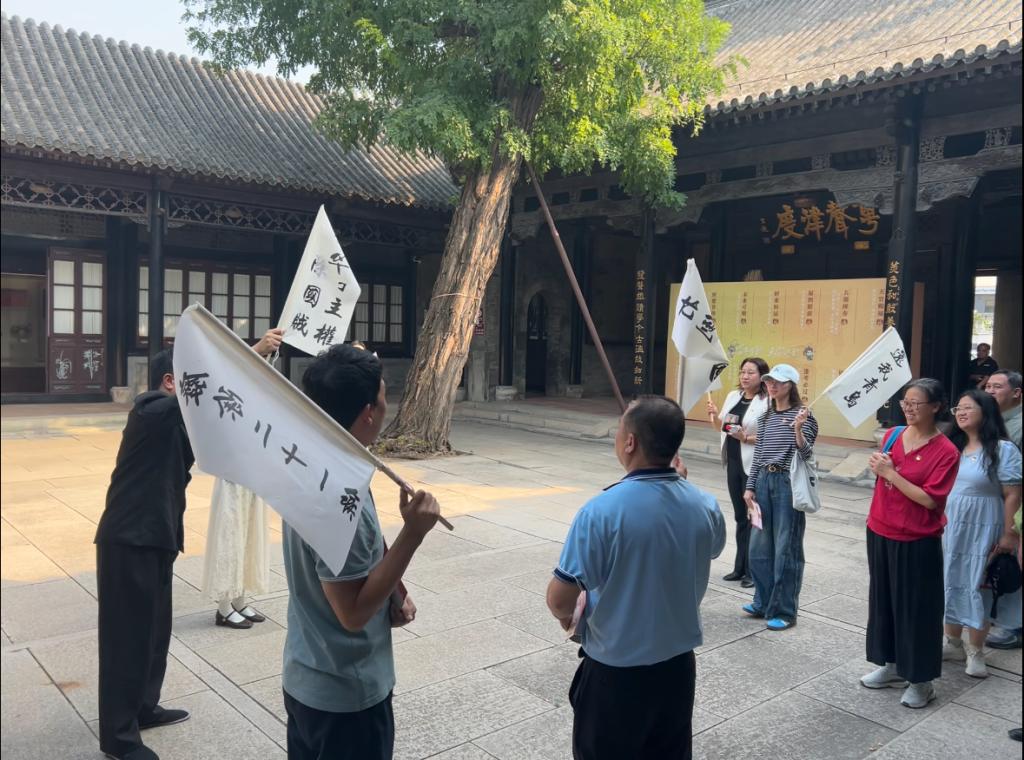 历史场景唤醒红色基因。师生党员依托三大革命历史事件——孙中山实业救国演讲、邓颖超义演排练《安重根刺杀伊藤博文》、天津总工会成立,通过沉浸式角色扮演、历史情景再现、行进式互动体验,感悟战火纷飞年代中华儿女的救国担当。当师生党员跟随演员一起,振臂高呼“振兴实业、建设共和”时,工业强国的历史使命与今日“制造强国”的时代呼唤在雕梁画栋间形成震撼回响。