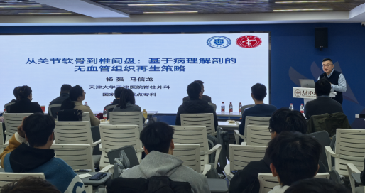 会上,天津市天津医院杨强教授作题为《从关节软骨到椎间盘:基于病理解剖的无血管组织再生策略》的报告。他围绕仿生再生理念,整合模拟细胞外基质结构的支架材料、再造生理微环境及施加生物力学刺激,成功实现了无血管组织从结构到功能的生物学再生。