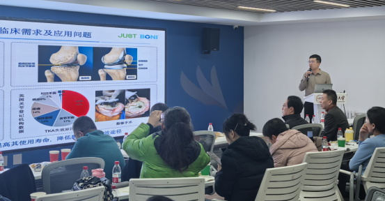 此外,嘉思特医疗器材(天津)股份有限公司代表分享了《基于生物力学的生物型膝关节假体》的研究进展。该公司通过仿生关节面形态设计,模拟松质骨力学特性,实现假体的生物固定,有效传递生理载荷、避免应力屏蔽,显著提升假体长期稳定性和患者术后关节功能恢复效果。