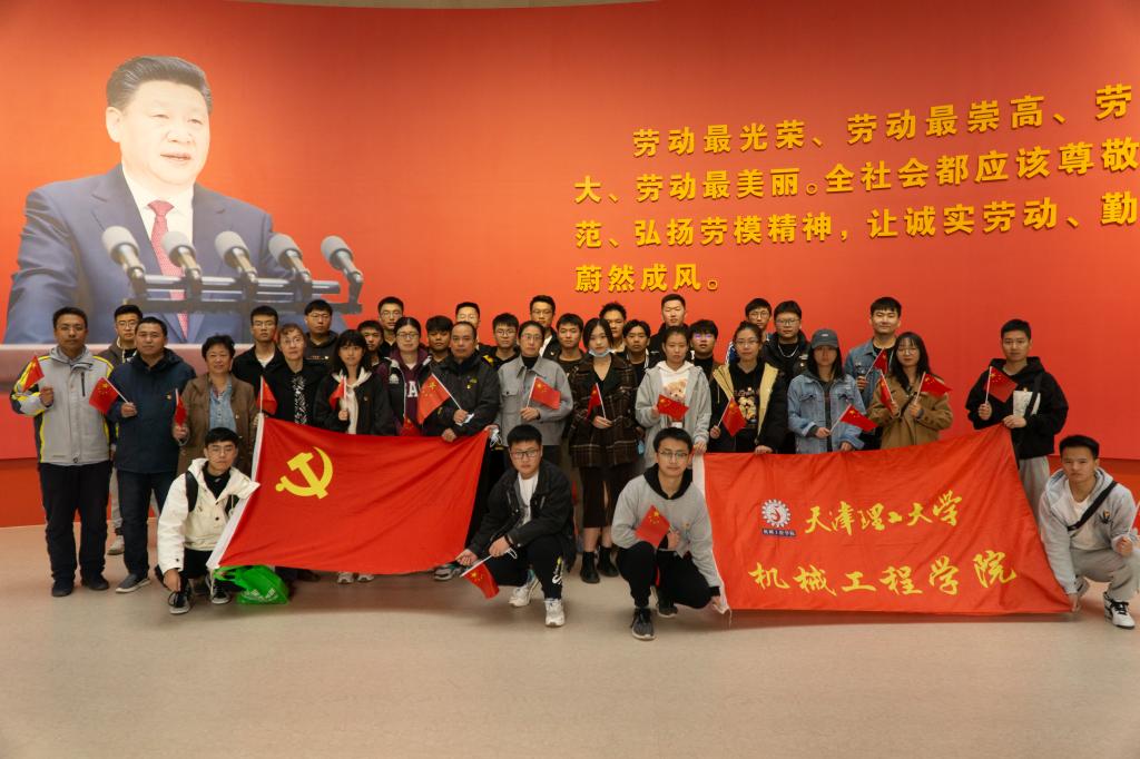 为深入学习贯彻习近平总书记“七一”重要讲话精神,学史崇德,赓续中国共产党人的精神谱系,厚植师生爱国主义情怀,10月20日下午,天津理工大学机械工程学院教工热能党支部携手本科能源党支部和本科新能源党支部,共37人,走进天津市总工会劳模事迹馆参观“天津市弘扬劳模精神劳动精神工匠精神教育展”,领略劳模风采,感受榜样力量。
