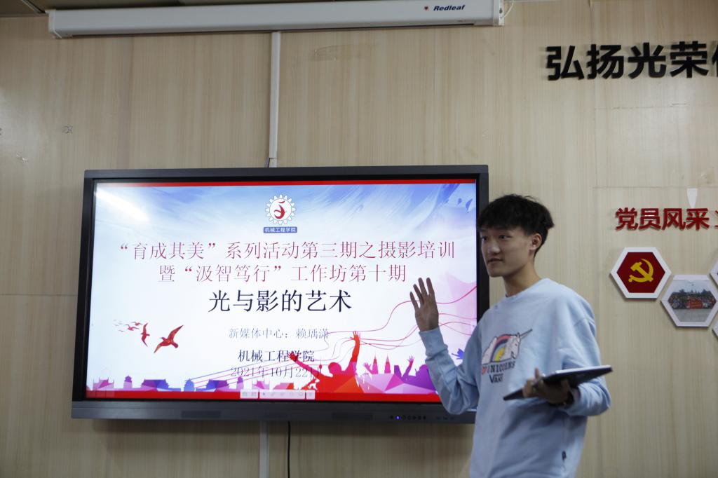 为进一步提升学生骨干的摄影能力,加深对摄影的理解,提高学生工作质量。10月22日,机械工程学院新媒体中心组织开展“育成其美”系列培训会第三期暨“汲智笃行”工作坊第十期,各社团骨干及新媒体中心成员参与此次培训。