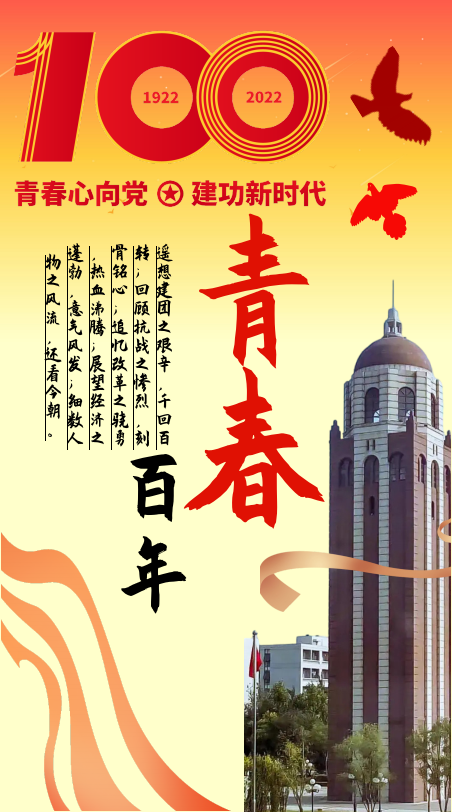 机械学子,结合自身优势特点,制作建团百年海报,引导广大团员青年继承和发扬五四精神,展现机械青年奋发有为的良好精神风貌和青春风采,以实际行动迎接二十大,献礼中国共产主义青年团建团100周年。