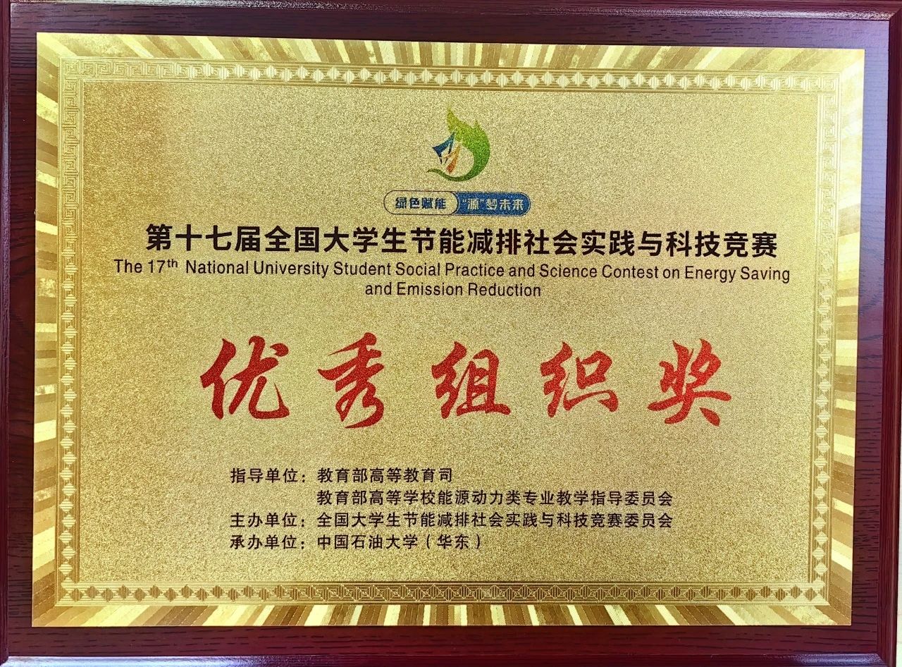 8月4日至7日,由教育部高等教育司、教育部高等学校能源动力类专业教学指导委员会指导,全国大学生节能减排社会实践与科技竞赛委员会主办的第十七届全国大学生节能减排社会实践与科技竞赛决赛在中国石油大学(华东)举行。我院学子在本次竞赛中斩获一、二、三等奖各1项,学校荣获全国“优秀组织奖”。