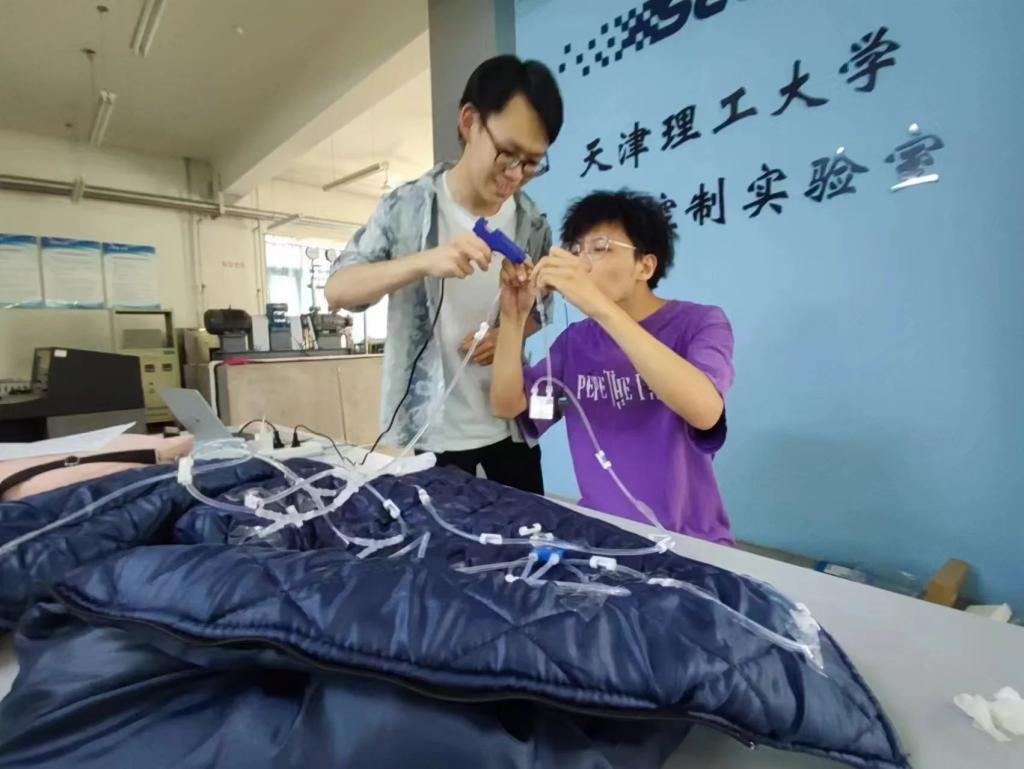 本次三等奖的获奖作品《智蛛凉络:脉络网式仿生智控太阳能自适应个性化降温装置》由我院教师李涛指导,学生王秦中、阮腾越、李思莹共同完成。该项目汲取自然界蛛网的高效散热特性及人体脉络的温度调节机制,设计了一种基于半导体制冷技术和蜘蛛网状管路布局、脉络走线的个体降温装置。项目体现了新质生产力的理念,全面提升了高温环境下工作效率和安全性,是面向未来的节能降温的“新质”解决方案。