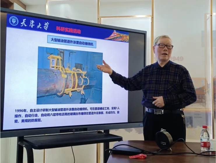 杜玉明教授作为天津大学机械工程学院关心下一代委员会委员,为学生们分享了自己多年从事设计和科研的宝贵经验,介绍了机械装备的设计思路、方法,从反求设计、创新设计和工程应用等角度,分析了现代机械产品的功能、性能及制造工艺,讲解了技术、创新精神和广泛的知识面对于机械设计的重要性,给学生留下深刻印象。