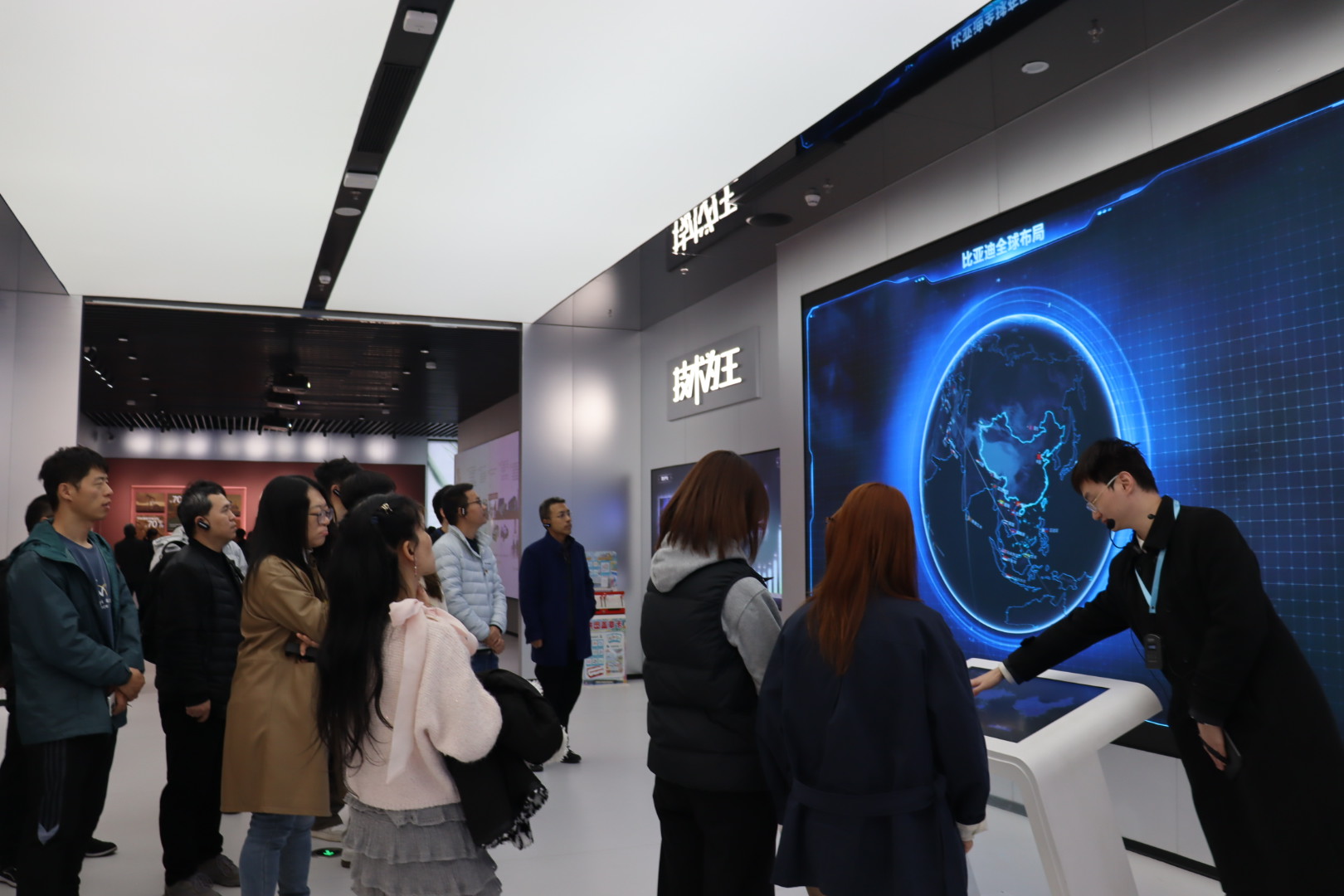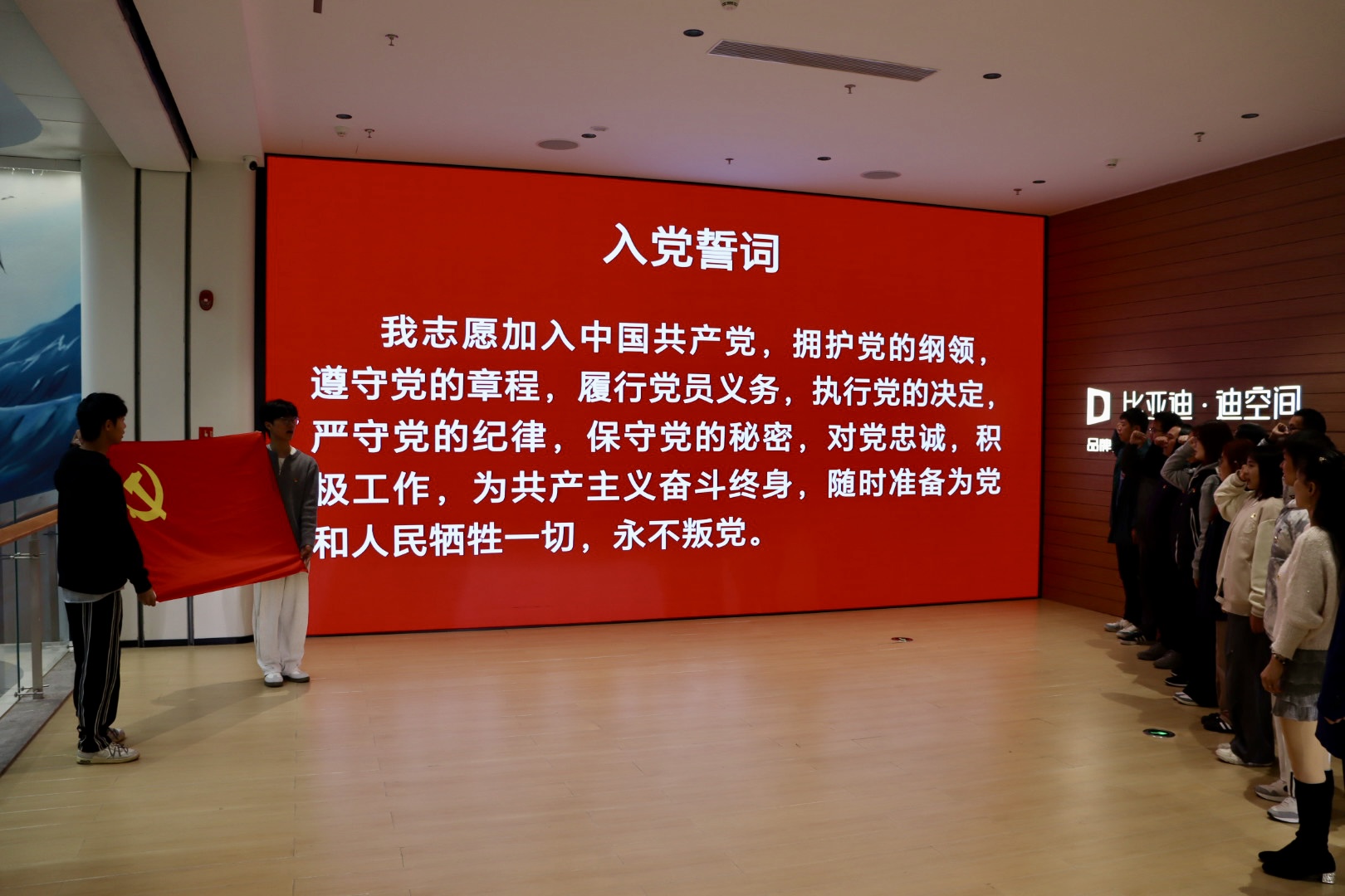 在迪空间展厅,师生党员们沿着“品牌文化—匠心智造—创新技术—科技探索”主线,系统了解了中国新能源汽车从能源危机中突围、在核心技术中突破的奋斗历程。在“能量花园”中感受清洁能源的绿色愿景,在“创新技术空间”中体验刀片电池、智能驾驶等硬核科技,在“匠心智造空间”中感悟从“一条线的开始”到“一辆车的诞生”背后所蕴含的工匠精神与工业美学。党员们在沉浸式互动中,深刻体会到新质生产力在新能源汽车领域的生动实践,增强了对中国智造的行业自信与专业认同。
