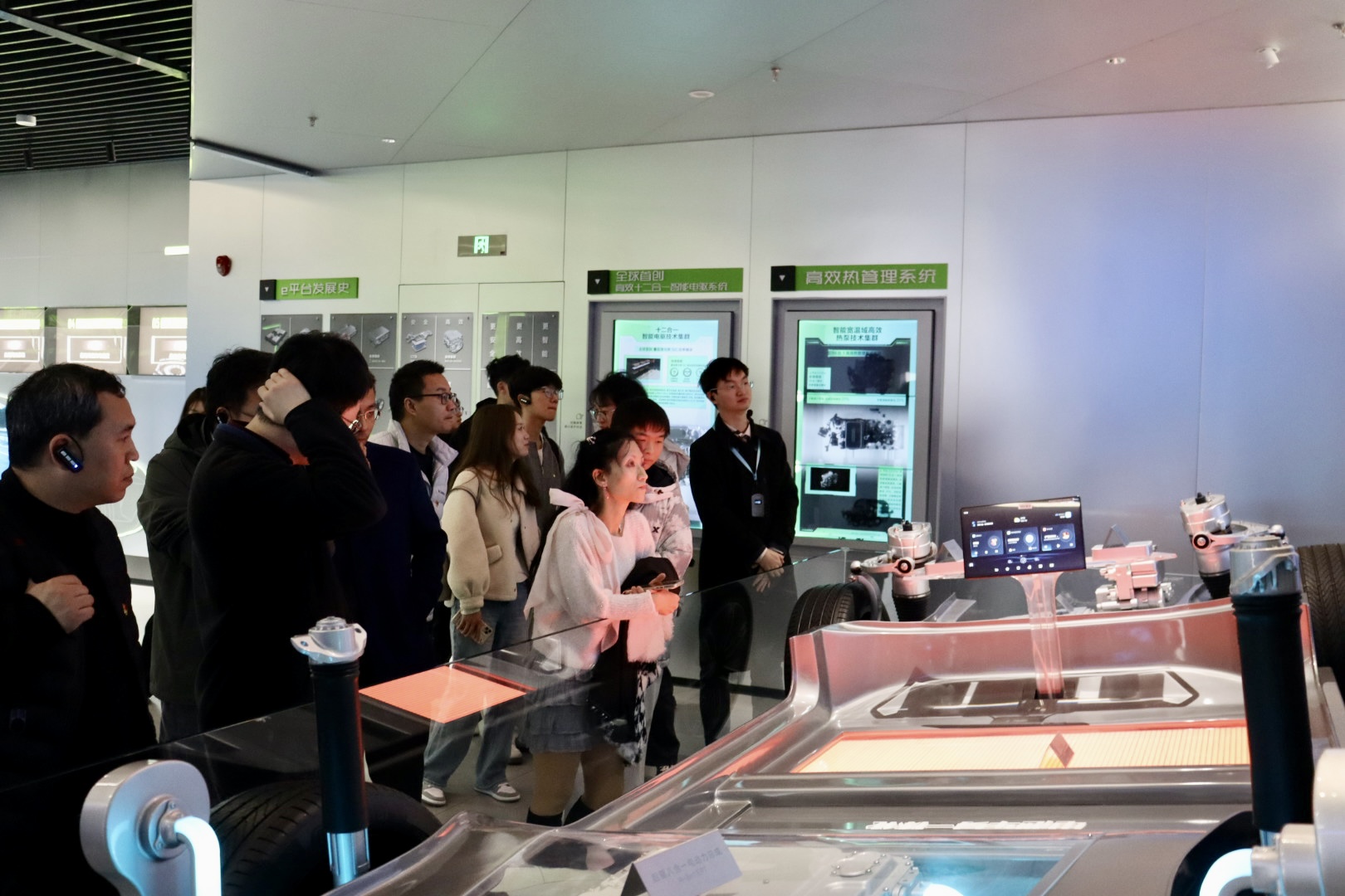 参观过程中,迪空间讲解员以“中国新能源汽车出海”为案例,讲述民族品牌打破技术壁垒、走向国际市场的奋斗历程,增强师生对“中国智造”的文化自信与情感认同。师生党员结合新能源科学与工程专业背景,围绕“电动化、智能化、全球化”趋势展开现场研讨。大家一致认为,比亚迪作为民族企业实现技术超越的典范,其发展路径正是习近平总书记“把科技自立自强作为国家发展的战略支撑”重要论述的生动诠释,也更加坚定了师生服务国家能源战略、投身绿色科技革命的使命担当。