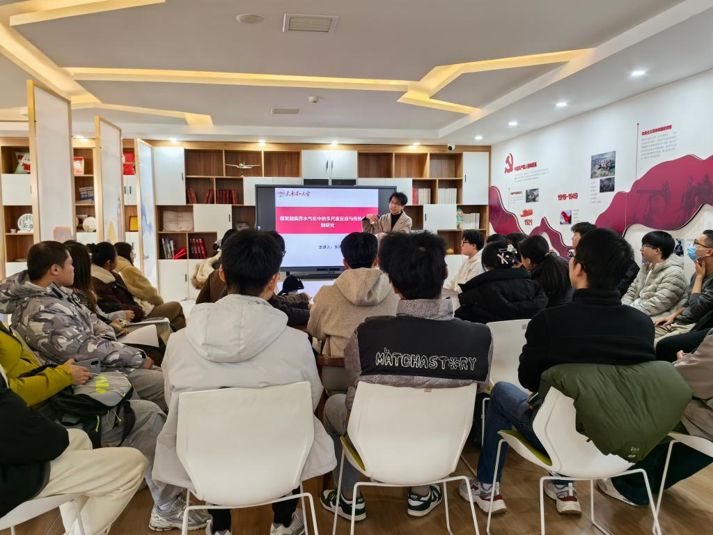 朱时兴老师从我国的能源现状与低碳转型的国家战略需求切入,阐明了煤炭清洁高效利用的紧迫性,并点明了超临界水气化制氢技术的关键应用价值。在研究展示环节,他将复杂的“多尺度”课题,清晰拆解为分子模拟、介观实验与宏观仿真等层层递进的环节,生动展现了“理论—实验—模拟”相结合的完整科研路径,使师生们领略到前沿研究严谨而清晰的逻辑魅力。