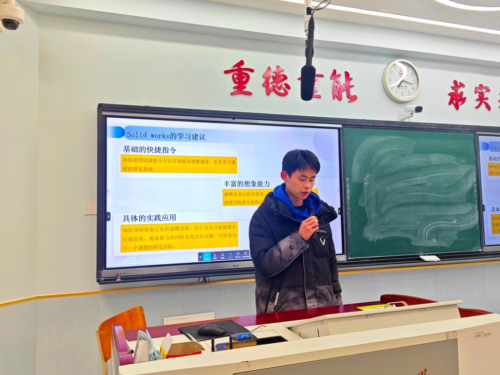 获“挑战杯”国赛二等奖的深蓝之眼团队,以水下机器人竞赛相关经验为核心展开详细分享,围绕项目筹备流程、建模学习路径等关键环节给出实用建议;获中国国际大学生创新大赛铜奖、中国机器人及人工智能大赛二等奖的隼驭轻辙团队,围绕国产高端装备自主化的核心需求,清晰呈现了技术创新如何实现产品性能的大幅提升,拓宽了新生的专业视野与发展思路;获“挑战杯”市赛二等奖、中国国际大学生创新大赛市赛银奖的巡鹰视界团队,介绍了车身漆面缺陷智能检测系统项目,分享赛事认知、评审逻辑、备赛路径、申报书撰写及汇报答辩技巧等关键内容;获“理工之星”优秀集体的智能垃圾桶团队,聚焦项目研发中的核心技术实操环节,详细讲述了SolidWorks机械设计、单片机硬件开发、EDA/PCB设计和基于YOLO模型的机器视觉实践经验。