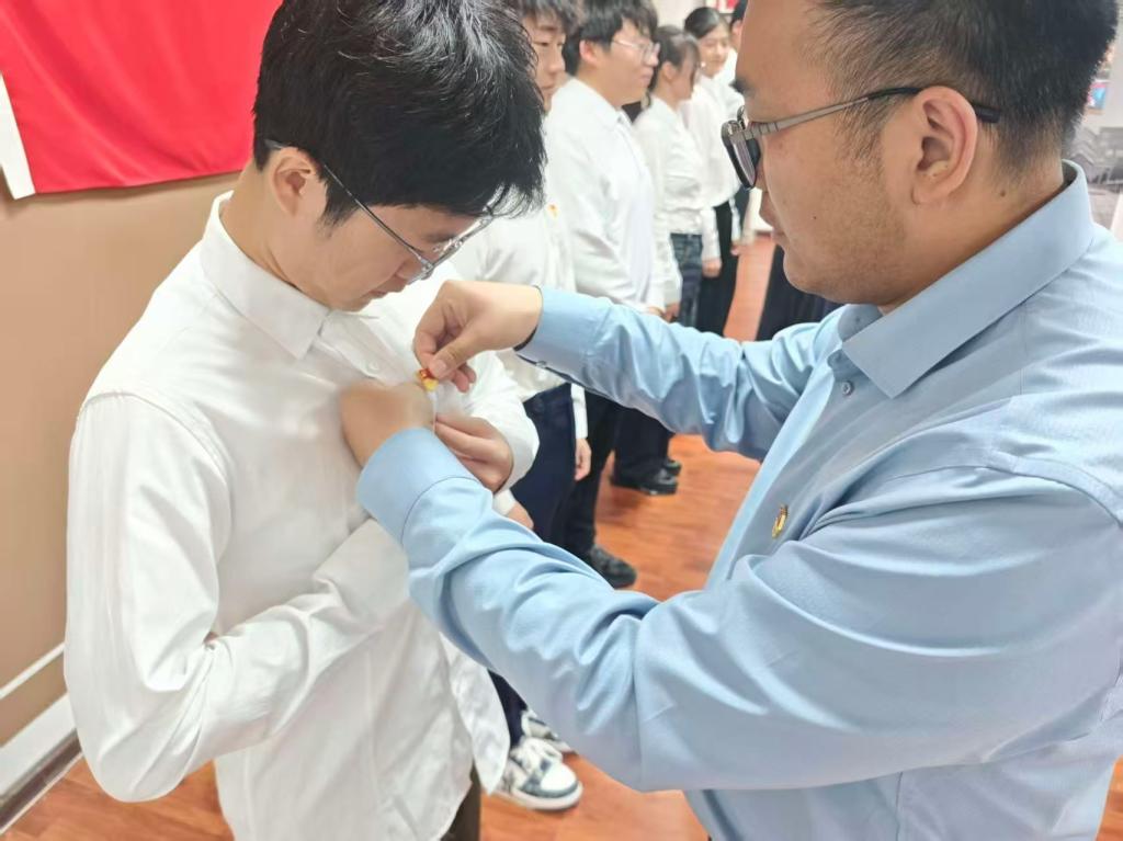 随后,党支部书记为新党员代表郑重佩戴党徽。一枚胸前的徽章,承载着沉甸甸的使命;一次光荣的佩戴,开启新征程的担当。新党员们接过这份象征与嘱托,扛起党组织薪火相传的接力棒。沉甸甸的使命;一次光荣的佩戴,开启新征程的担当。新党员们接过这份象征与嘱托,扛起党组织薪火相传的接力棒。