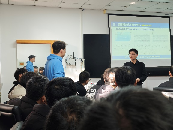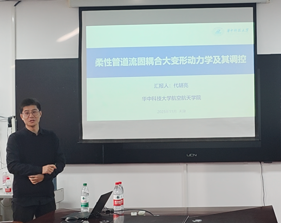 11 月 28 日上午,我院特邀华中科技大学教授、国家优秀青年基金获得者代胡亮教授莅临学院开展学术交流,并作题为《柔性管道流固耦合大变形动力学及其调控》的专题讲座。本次活动由冯晶晶教授主持,学院党政领导、相关专业教师及研究生积极参与,充分体现了学院对学术交流与人才培养工作的高度重视。